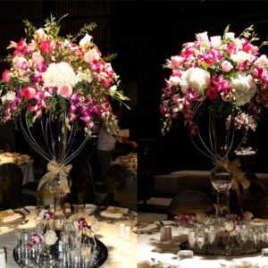Floral tabletop centerpiece setup